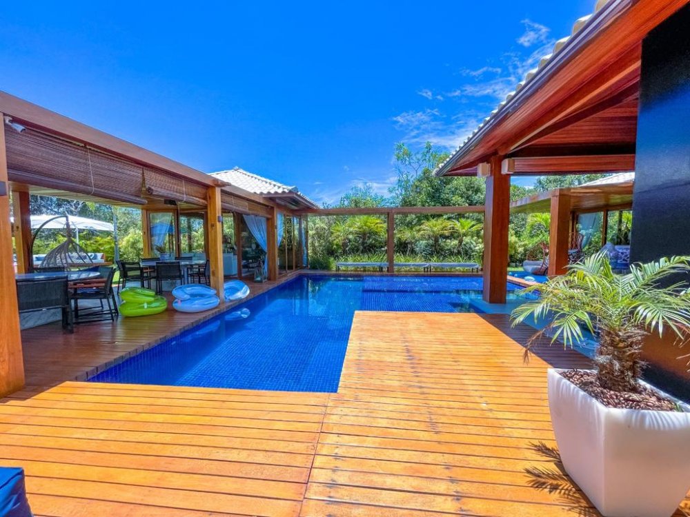 Casa composta de 4 suítes, módulo extra com possibilidade de mais 1 quarto, dependência completa. Casa totalmente estruturada para seu conforto, piscina com pracinha e hidromassagem, ar condicionado em todos os cômodos, sala de TV e som a parte da casa, área gourmet com máquina de gelo ( produz 50kg de gelo dia), churrasqueira a carvão e outra elétrica, 3 adegas, 3 cervejeiras.